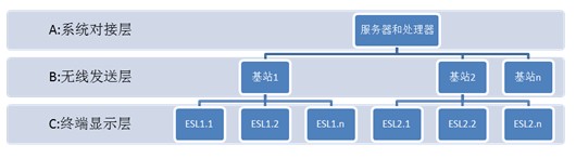 無線發(fā)送層由基站組成,主要是完成服務器的數(shù)據(jù)信息通過通訊協(xié)議處理轉(zhuǎn)發(fā)給相應需要顯示的節(jié)點,即電子標簽終端。無線發(fā)送層主要是無線基站組成,其是通過總線連接到系統(tǒng)對接層的處理器的,每個基站最多可以控制65536個電子標簽。