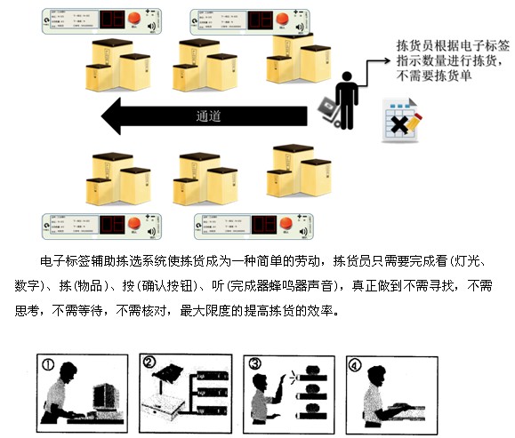 1.利用電子標簽揀貨,可大大加快揀貨速度,提高揀貨的準確率,提高揀貨效率,降低揀貨成本。